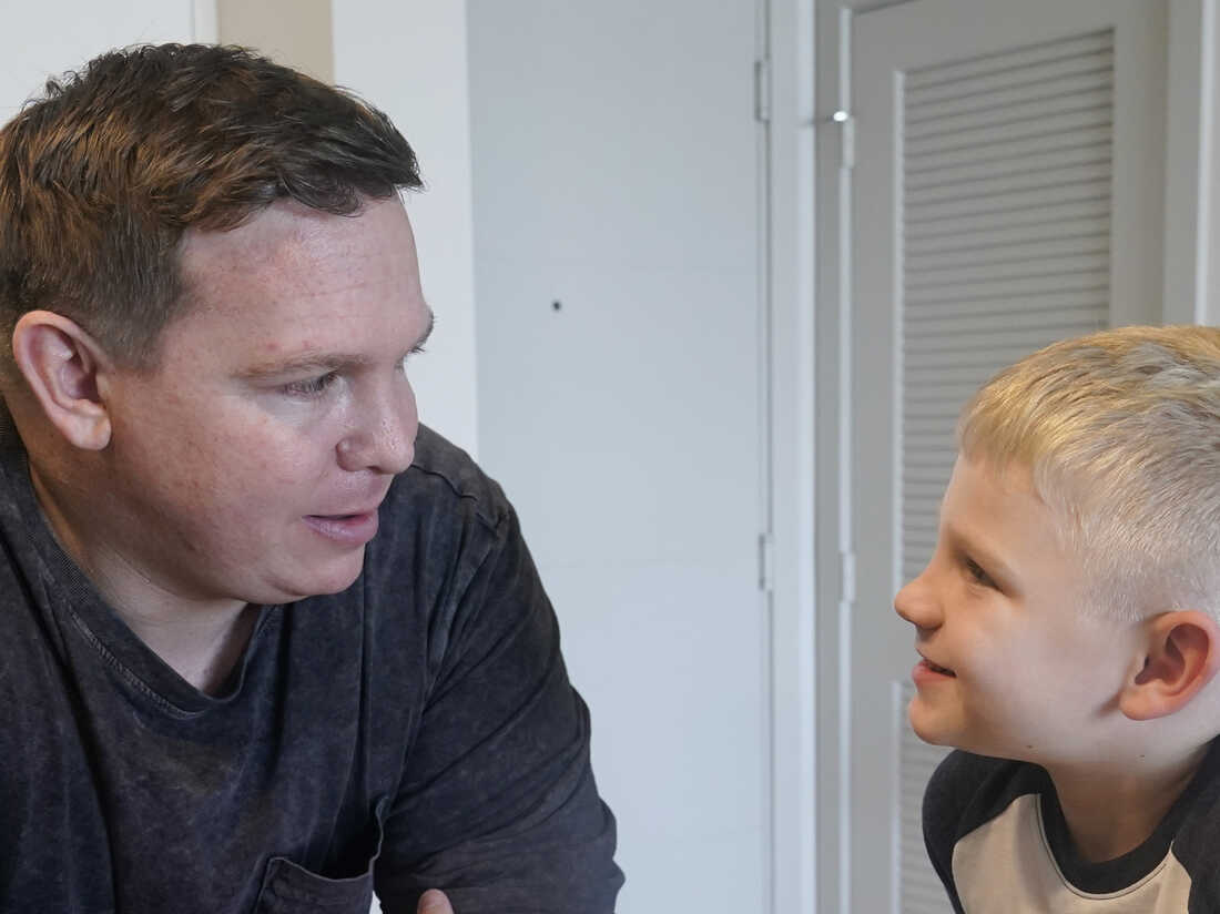 Associated Press investigative reporter James LaPorta and his son Joel, 5, sit at their home on Tuesday in Boca Raton, Fla. LaPorta recalls a boy he encountered in Afghanistan in 2013 while serving as a Marine. Marta Lavandier/AP